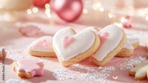 Festive Holiday Baking - Close-Up of Christmas Cookies Decorated with Love, Surrounded by Ingredients for Couple's Shared Passion