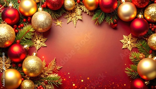 Festive holiday decorations christmas celebration image of ornaments and foliage warm atmosphere top-down view joyful spirit