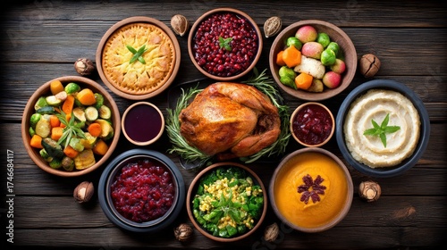 Festive Holiday Dinner Table Arrangement with Delicious Dishes