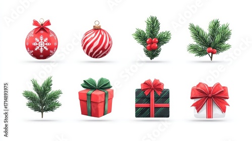 Festive Holiday Ornaments & Gifts: A collection of Christmas ornaments, holiday gifts, and botanical accents. evoking holiday cheer.