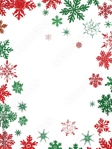 Festive Holiday Snowflake Border Design with Vibrant Red and Green Accents, Perfect for Winter Greetings and Seasonal Celebrations, Ideal for Card and Decoration Use