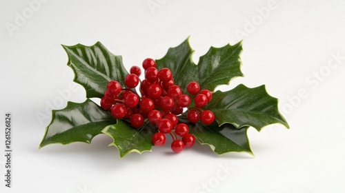 Festive Holly Sprig with Bright Red Berries