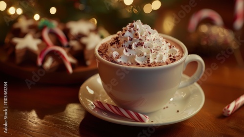 Festive Hot Chocolate with Whipped Cream and Candy Canes for Christmas