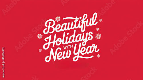 Festive lettering against a red background wishing Beautiful Holidays and a Happy New Year adorned with delicate snowflake accents.