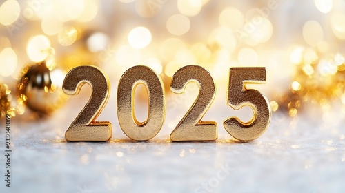 Festive New Year's Day Number "2025" Highlighting Hope and Anticipation, Soft Tones and Bokeh Background