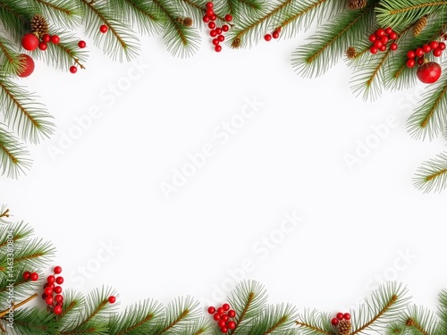 Festive Pine Branches Border on White Background