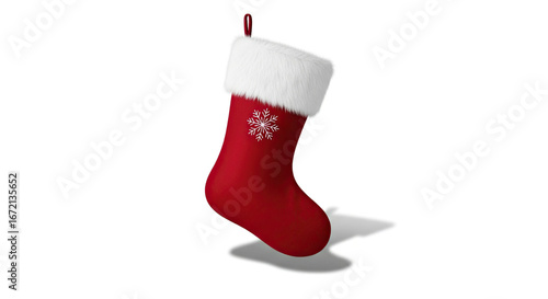 Festive red Christmas stocking with plush white trim and snowflake detail
