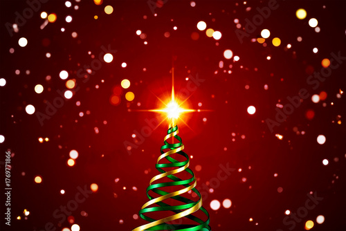 Festive ribbon tree with glowing star and bokeh lights christmas green