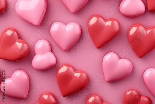 Festive seamless pattern. Red balloons heart-shaped on a pink background.