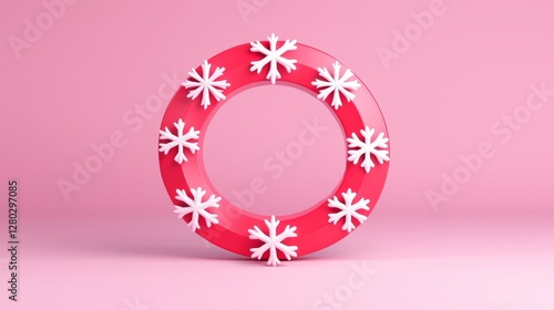 Festive snowflake wreath decoration holiday setting digital art pink background creative viewpoint seasonal concept