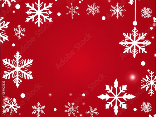 Festive snowflakes dance on a bright red background creating a cheerful winter atmosphere. Christmas and New Year