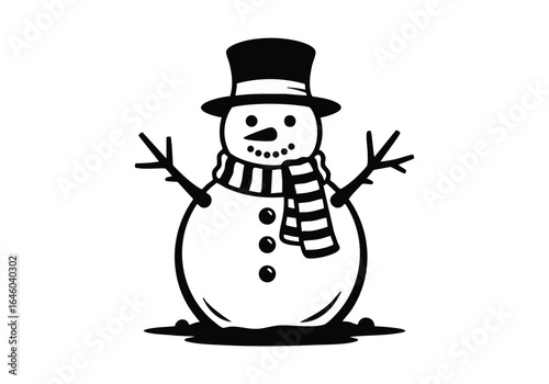 Festive Snowman Illustration with Top Hat and Striped Scarf Cheerful Winter Holiday Graphic Element