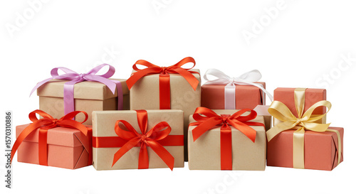 Festive Stacked Gifts Presents with Ribbons Bows Transparent Background