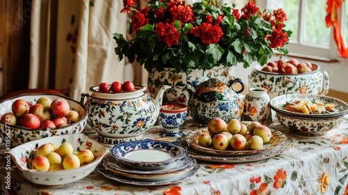 Festive Table Display with Colorful Dishes and Fresh Produce for Radish Festival Celebration