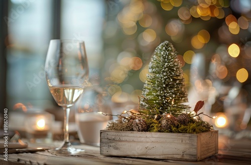 Festive Table Setting With Wine and Pine