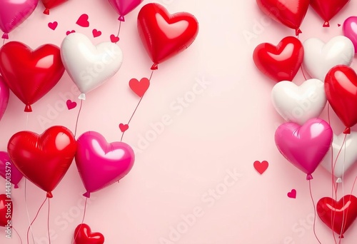 Festive Valentine's Day card background; red, pink, and white heart-shaped balloons float against a light backdrop, balloon, pattern