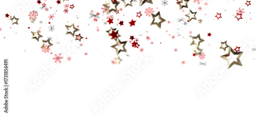 Festive winter background with red and gold stars and snowflakes. Perfect for Christmas, New Year, and winter holidays.