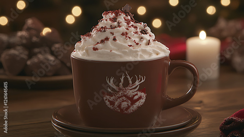 Festive Winter Cocoa Delight a Warm Christmas Treat with Holiday Cheer and Red Velvet Topping