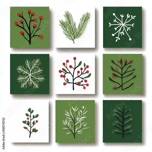 Festive winter foliage and botanical illustrations