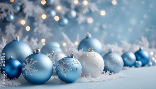 festive winter holiday decorations with ornate snowflake designs against shimmering bokeh backdrop
