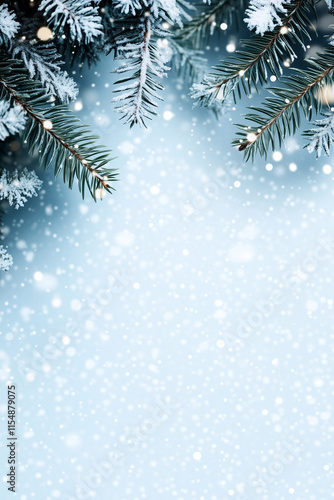 festive winter holidays background featuring lush pine branches and delicate snowflakes. Perfect for seasonal card designs, holiday greetings, flyer poster web banner design media