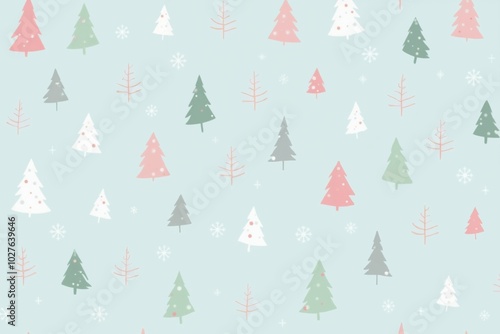 Festive winter pattern with colorful christmas trees and snowflakes for holiday design.