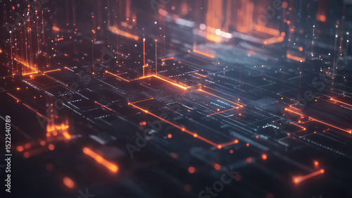 Fiber optic cables abstract technology background. Abstract lights of fractal realms digital network technology