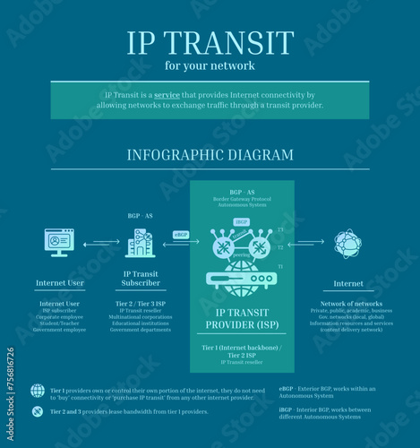 Fibre Internet - IP Transit Infographic Diagram, Gradient, Blue, Green, Solid
