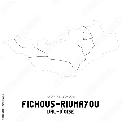 FICHOUS-RIUMAYOU Val-d'Oise. Minimalistic street map with black and white lines.