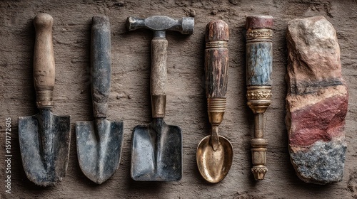 Field Geology Tools for Rock and Mineral Identification, Soil Sampling, Terrain Mapping, Geological Surveying, and Environmental Impact Assessment in Geology, Mining, and Earth Science Research.