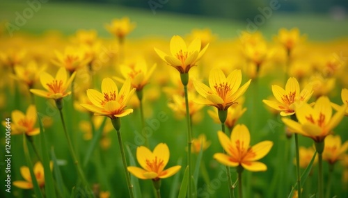 Field of Canna Glauca in full bloom with yellow petals and orange spots, meadow, orange, canna glauca