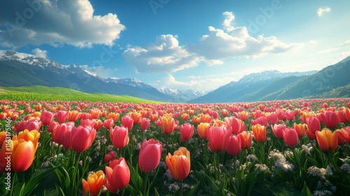 Field of vibrant pink flowers under a clear blue sky with sunlight