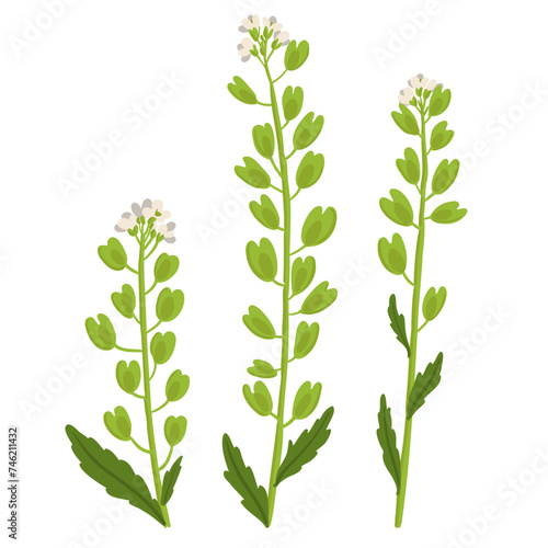 field pennycress flowers, vector drawing wild plants at white background, Thlaspi arvense,floral element, hand drawn botanical illustration