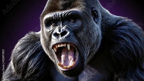 Fierce Gorilla Roaring in Dramatic Close-Up