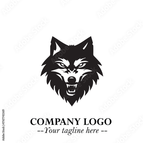 Fierce Head of Wolf Logo Symbol in Black on White Background with Bold Minimalist Modern Design