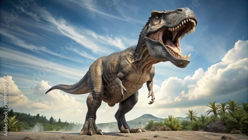 Fierce, majestic Tyrannosaurus Rex standing tall against a white background