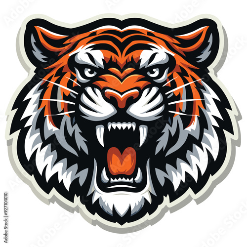 Fierce tiger mascot illustration in orange, black, white, perfect for sports teams logo