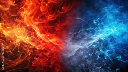 Fiery background of red and blue battle , flames, war, conflict, intense, vibrant, dynamic, aggressive, powerful, color contrast