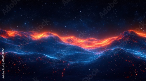 Fiery, blue nebula landscape; cosmic, digital art; website banner