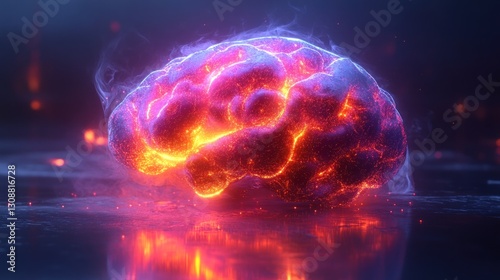 Fiery brain, abstract digital art, glowing energy, sparks and smoke in background
