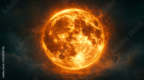 Fiery Celestial Orb Burning Moon in Cosmic Night