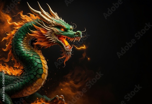 Fiery Chinese Dragon Roars in a Dramatic Fantasy Scene for Background