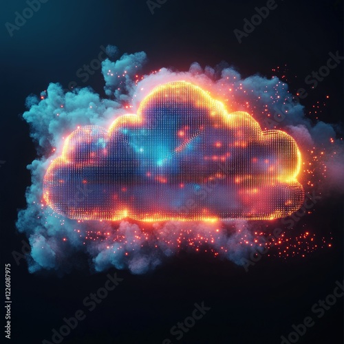 Fiery cloud digital data concept.
