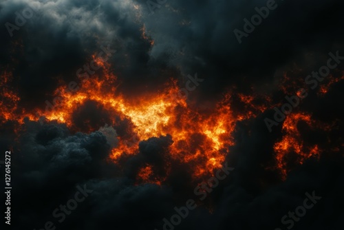 Fiery clouds in dramatic sky with intense hues. AI image