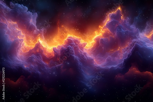 Fiery Cosmic Cloudscape Across a Starry Expanse