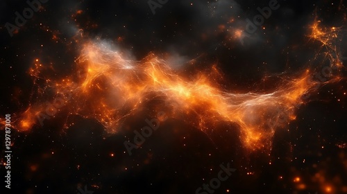 Fiery cosmic energy nebula formation in vast deep space scenery