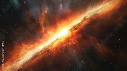 Fiery cosmic explosion in deep space amidst stars and nebulae