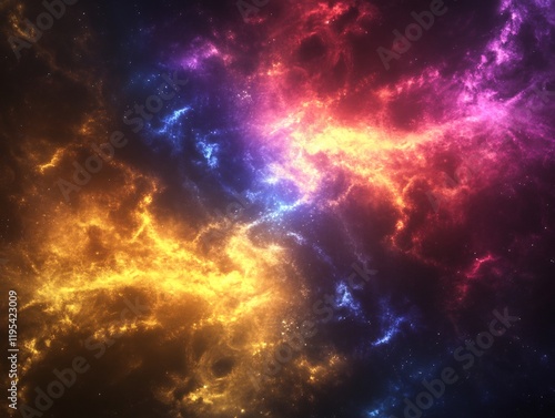 Fiery cosmic nebula swirls dynamically showcasing vibrant red orange blue hues. AI Generated