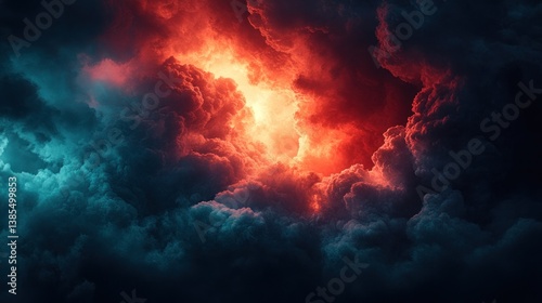 Fiery, dark clouds collide, vibrant colors clash