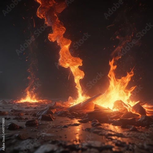 Fiery embers float, glowing intensely against a shadowy backdrop , moody, light
